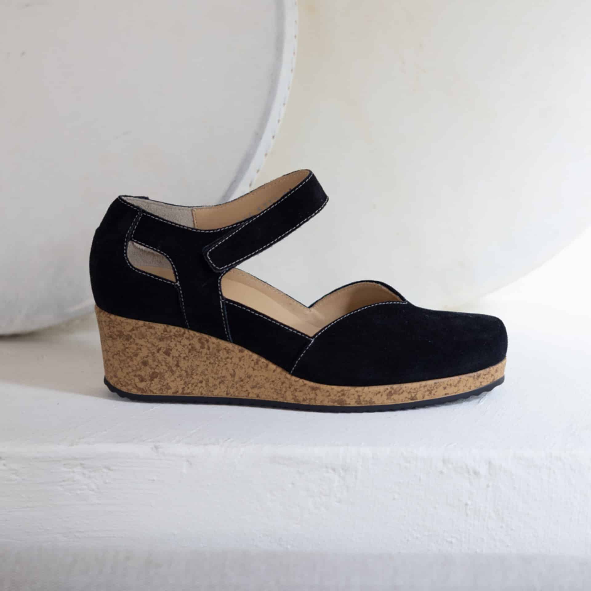 De verstelbare band over de enkel is voorzien van een klittenbandsluiting waardoor de schoen de voet goed omsluit én eenvoudig aan en uit te trekken is. Een groot voordeel van deze schoen (en van alle andere Durea modellen) is het verwisselbare voetbed. Indien nodig kun je dus je eigen inlegzolen dragen.