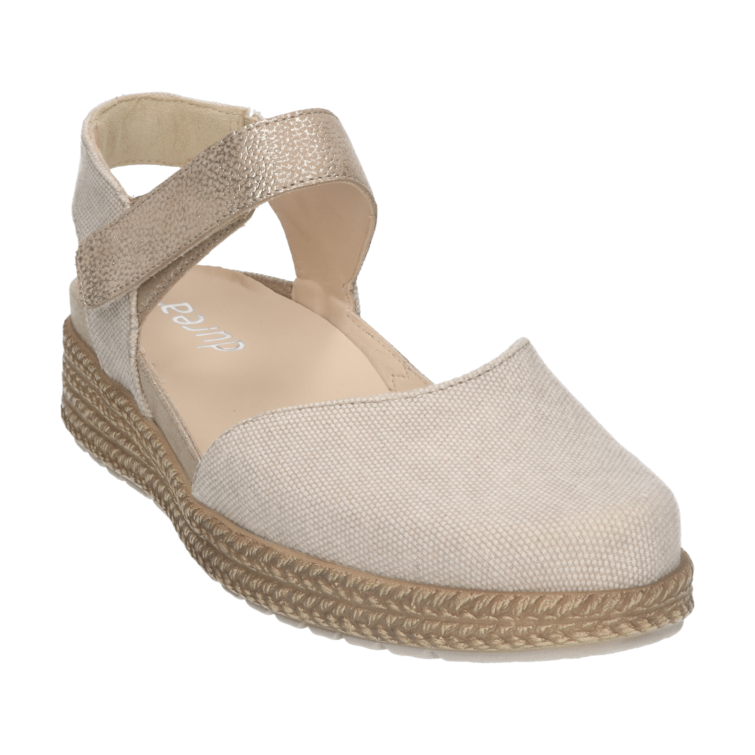 De band over de wreef sluit met een verborgen klittenbandsluiting, waardoor de schoen de voet goed omsluit én eenvoudig aan en uit te trekken is. Een doordacht detail is de extra zachte polstering aan de binnenzijde van de hiel. Het is een soort kussentje dat comfortabele ondersteuning biedt en voorkomt dat de hielversteviging tegen je voet drukt. Net als alle andere Durea schoenen heeft dit model een verwisselbaar voetbed, handig als je je eigen inlegzolen wil gebruiken.