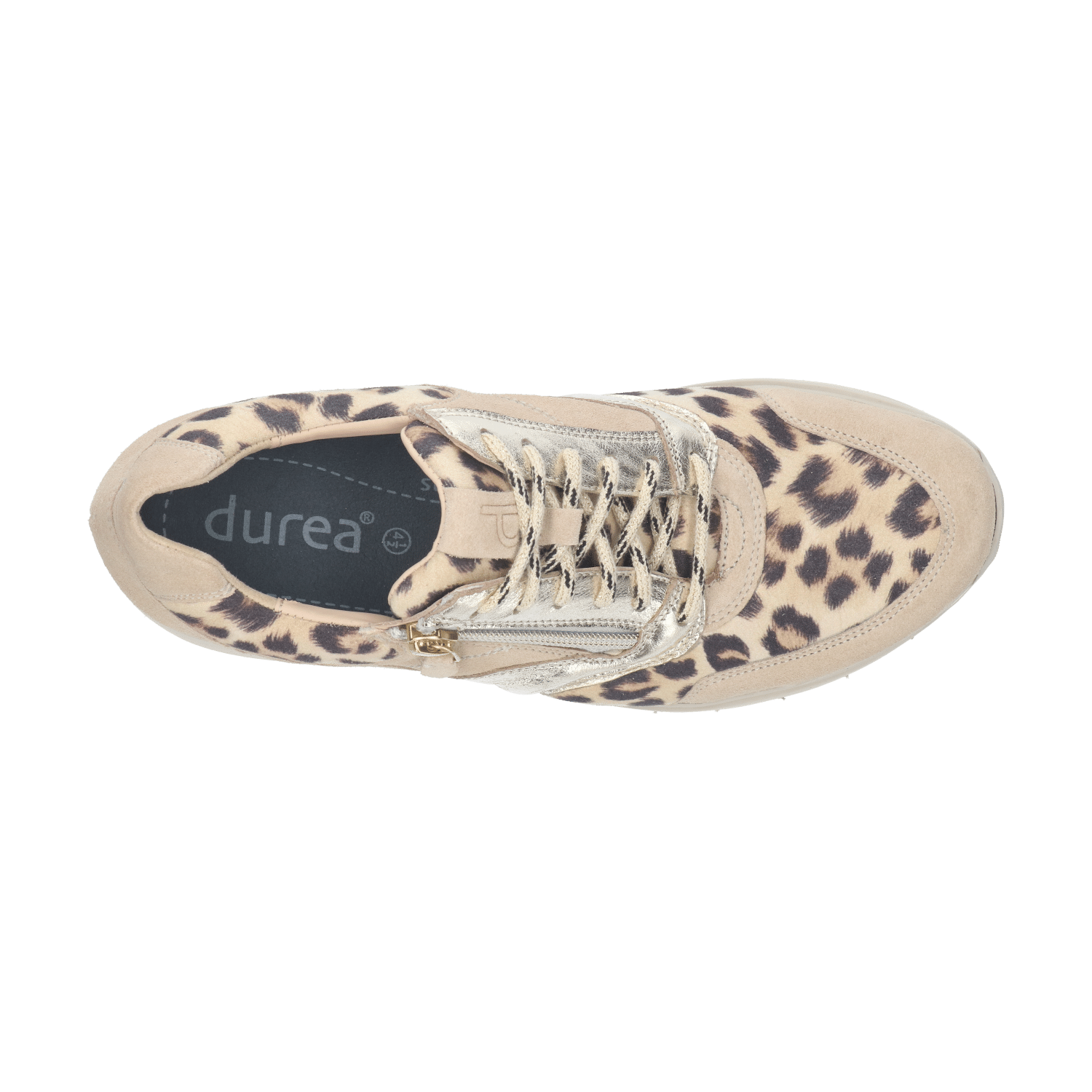 Uitgevoerd in een uitgebalanceerde materialenmix, zal dit paar Durea’s bovendien niet snel gaan vervelen. Opvallend zijn de golvende vlakken en het merkembleem op de tong. Ze geven de schoen een speels uiterlijk, terwijl de fraaie afwerking zorgt voor een volwassen look. Een praktische toevoeging is de veter-rits-combinatie, waardoor je de schoen makkelijk aan en uit kunt doen.
