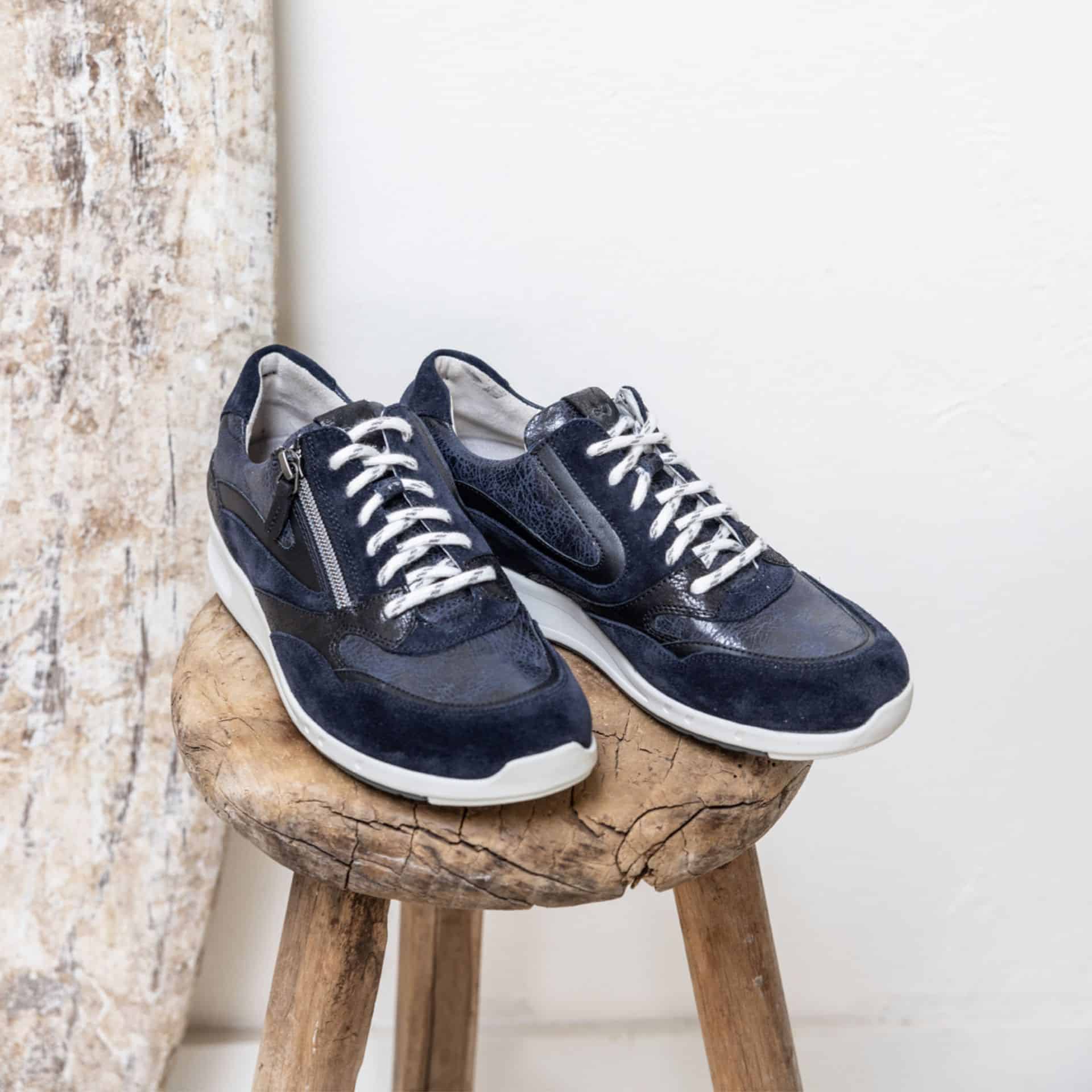 Dankzij de veter-rits-combinatie kun je de sneaker heel gemakkelijk aan- en uitdoen én goed afstellen om de voet. Wat je niet meteen ziet, maar wel voelt, is de extra zachte polstering bij de hiel. Deze biedt comfortabele ondersteuning aan de achterzijde van de voet. De zool is uitgerust met Durea GO technologie die een natuurlijke houding stimuleert en zorgt voor een stabiel looppatroon. Zo wordt de druk gelijk over de gehele voet verdeeld en kost staan en bewegen minder energie.