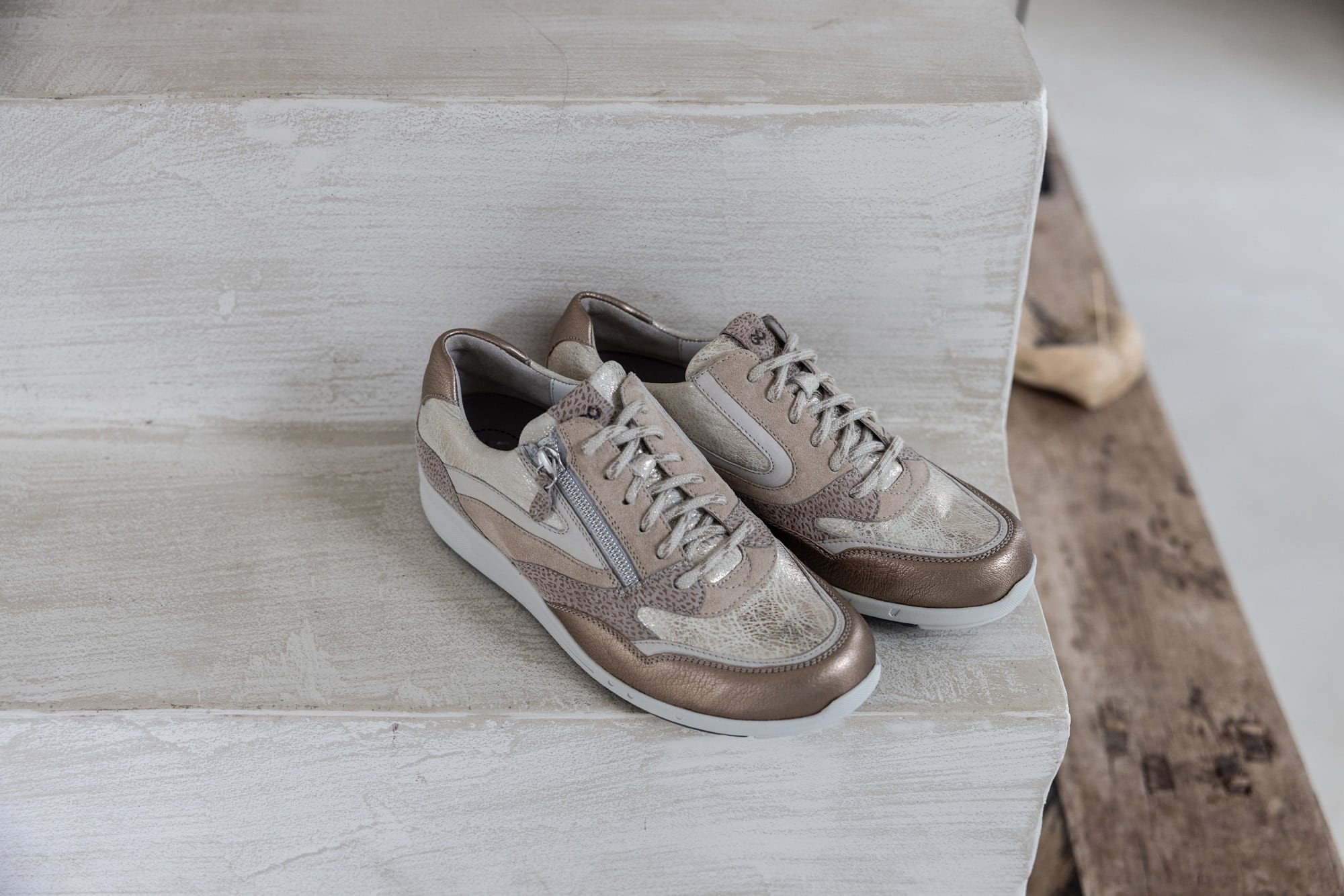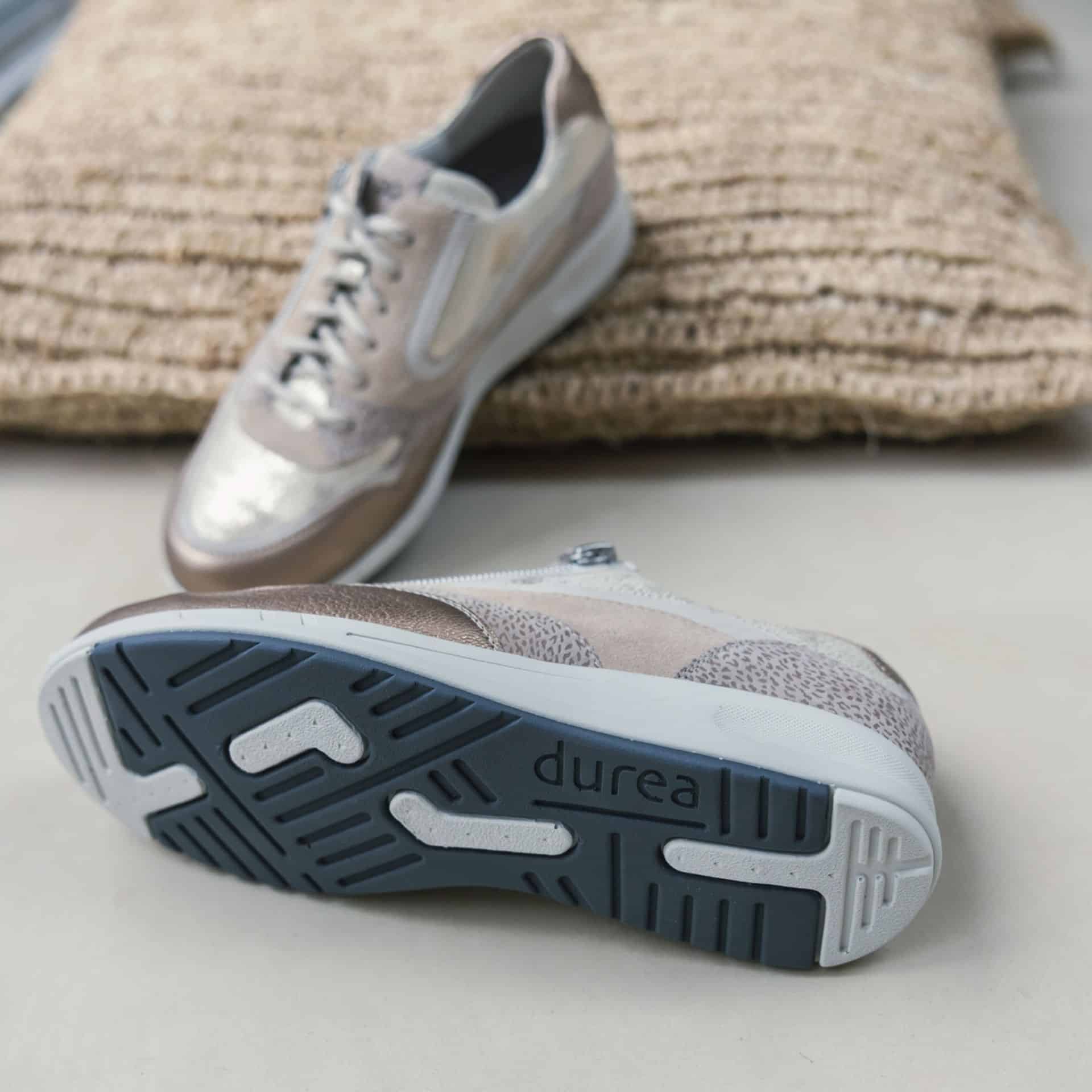 Dankzij de veter-rits-combinatie kun je de sneaker heel gemakkelijk aan- en uitdoen én goed afstellen om de voet. Wat je niet meteen ziet, maar wel voelt, is de extra zachte polstering bij de hiel. Deze biedt comfortabele ondersteuning aan de achterzijde van de voet. De zool is uitgerust met Durea GO technologie die een natuurlijke houding stimuleert en zorgt voor een stabiel looppatroon. Zo wordt de druk gelijk over de gehele voet verdeeld en kost staan en bewegen minder energie.