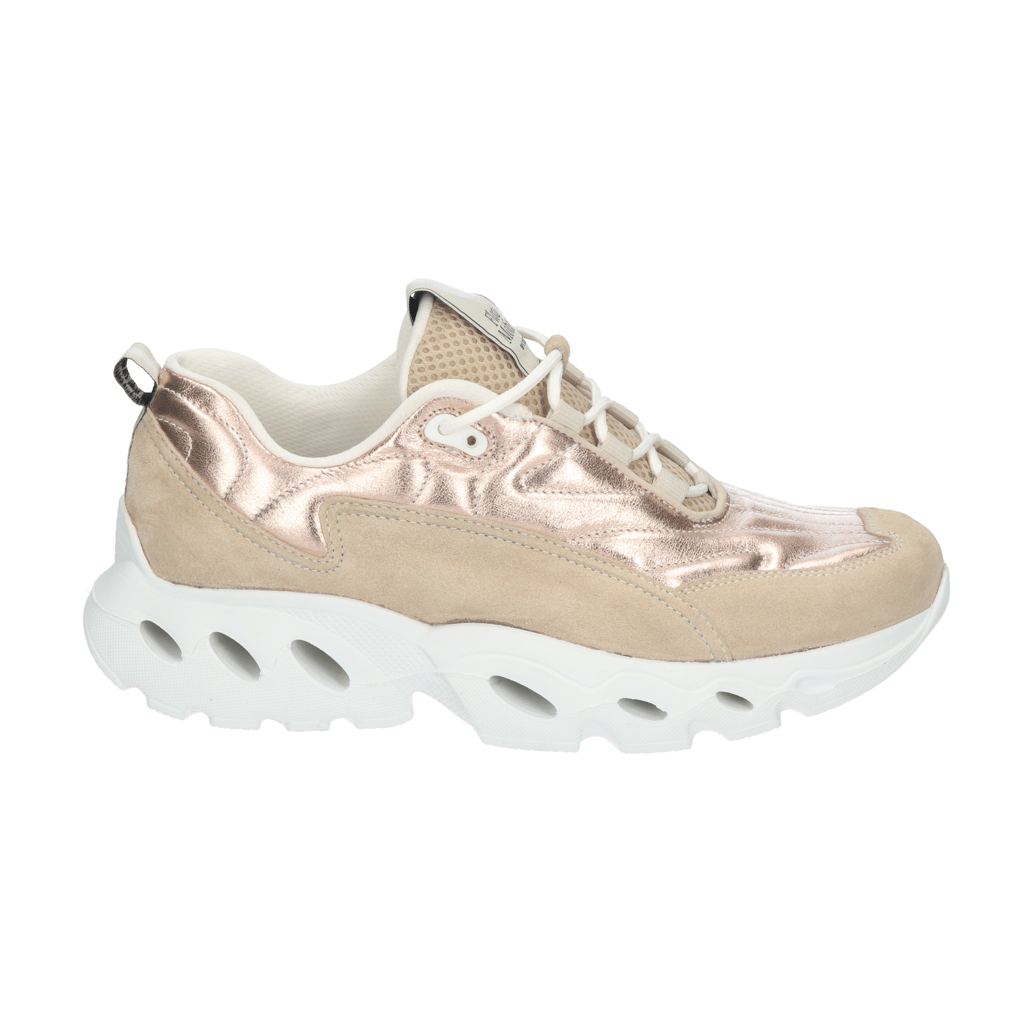 De dynamische lijnen, gewatteerde finish van het bovenwerk en de vetersluiting maken van dit model een ware blikvanger. Elk detail is zorgvuldig overwogen, van het stijlvolle merkembleem op de tong tot het lusje aan de hiel. Binnenin is de schoen voorzien van extra zachte polstering: een soort kussentje dat comfortabele ondersteuning biedt en drukpunten voorkomt. Het omhult je voet als een stevige cocon.