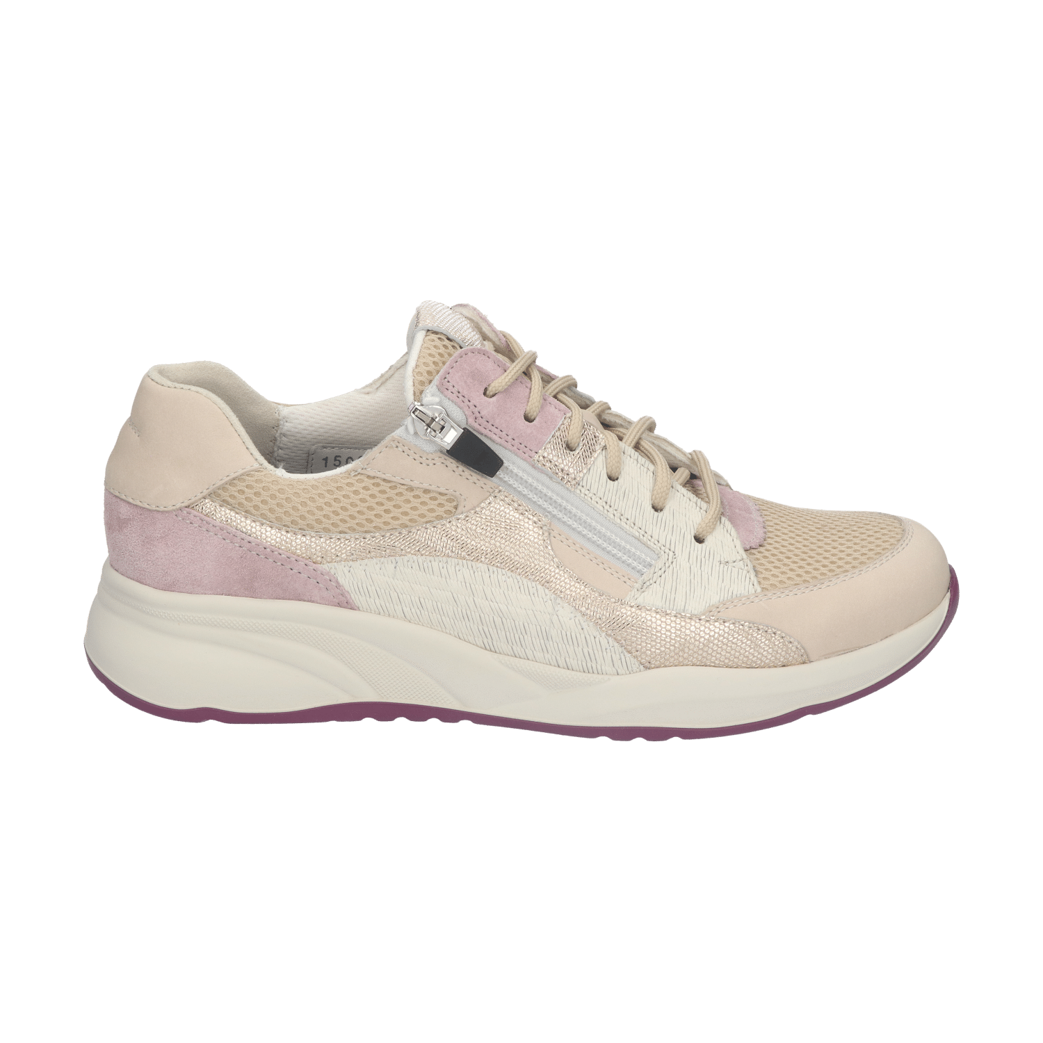 Het bovenwerk valt op door een dynamisch lijnenspel en een speelse mix van materialen en texturen. De gekartelde afwerking van het leer en het merkstempel op de tong zijn verfijnde details die speelsheid toevoegen zonder de aandacht van je outfit af te leiden. Wat je niet meteen ziet, maar wel voelt, is de voering van ademend en vochtabsorberend materiaal (Dry Maxx) dat ook nog eens fluweelzacht aanvoelt. Een ander fijn detail is de extra zachte polstering aan de binnenzijde van de hiel, die voorkomt dat de hielversteviging tegen je voet drukt. En aan het gebruiksgemak is ook gedacht: dankzij de veter-rits-combinatie kun je de sneaker heel gemakkelijk aan- en uitdoen én goed afstellen om de voet.