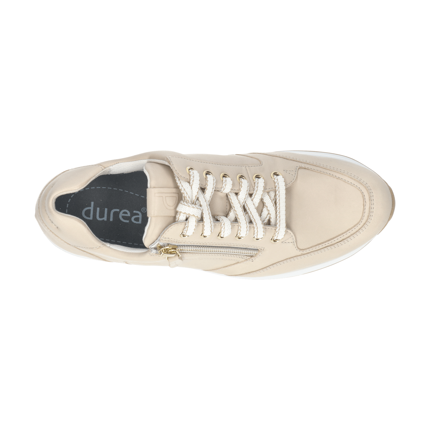 Het bovenwerk valt op door een dynamisch lijnenspel en een luxe mix van materialen. Op de tong prijkt ons Durea logo: een stempel van kwaliteit. Wat je niet meteen ziet, maar wel voelt, is de zachte polstering aan de binnenzijde van de hiel, die voorkomt dat de hielversteviging tegen je voet drukt. De klassieke derby-stijl vetersluiting in combinatie met de rits zorgt voor een gemakkelijke instap.