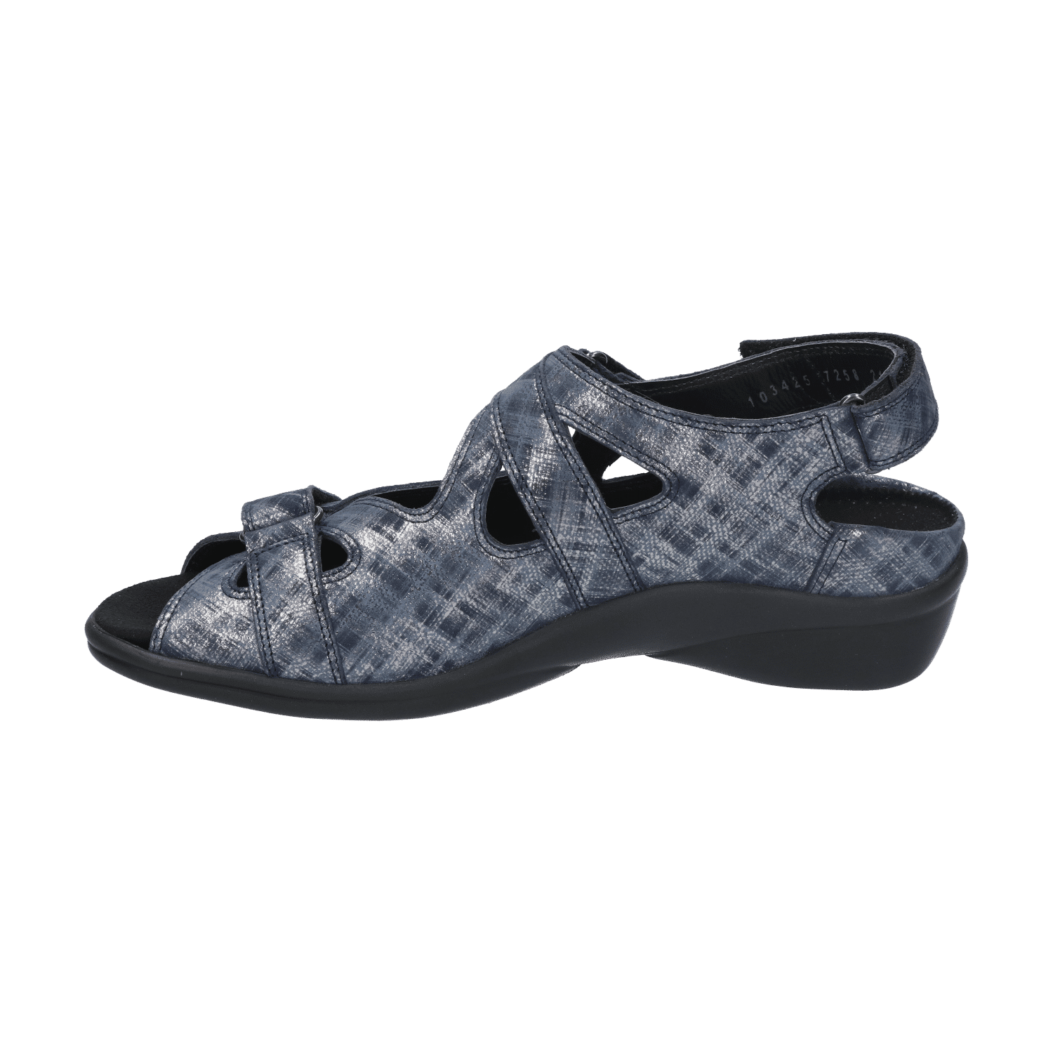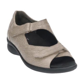 De sandaal is voorzien van drie klittenbandsluitingen; een op de voorvoet, een over de wreef en een aan de achterzijde over de hiel. De brede banden zijn individueel verstelbaar en zorgen ervoor dat de schoen gegarandeerd goed aan de voet blijft zitten.