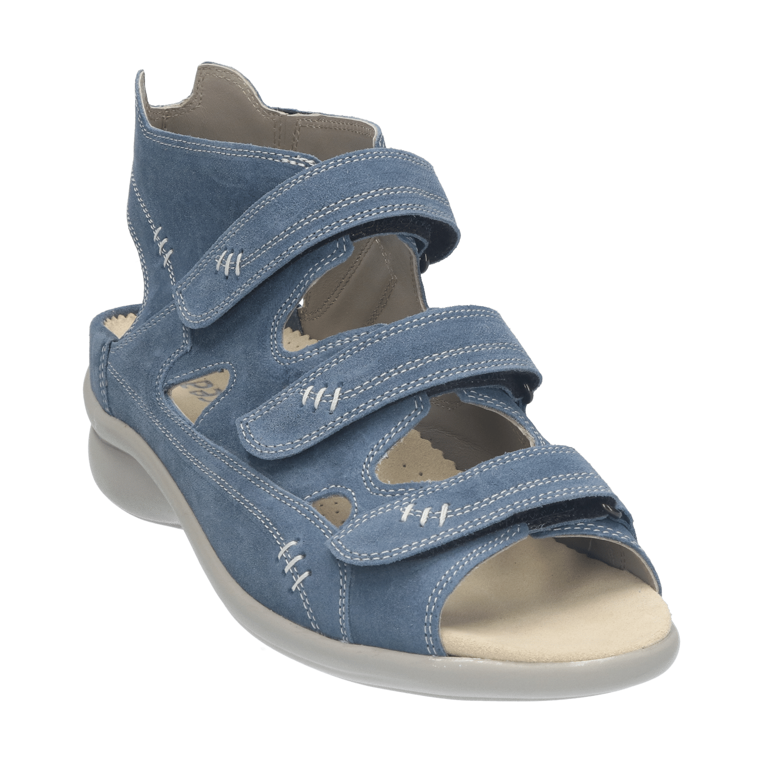 Het model heeft drie klittenbandsluitingen; een op de voorvoet en twee over de wreef. De brede banden zijn individueel verstelbaar en zorgen ervoor dat de sandaal gegarandeerd goed aan de voet blijft zitten. Aan de bovenzijde van de schacht is dit model uitgerust met elastiek voor een aansluitende pasvorm.