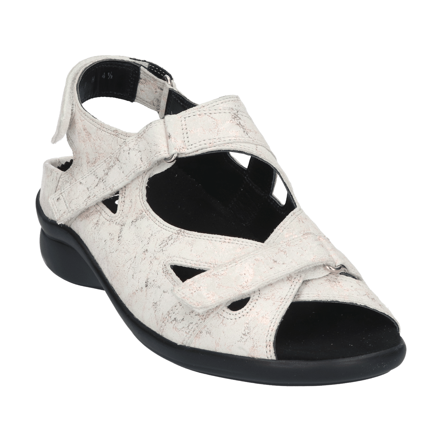 De sandaal is voorzien van drie klittenbandsluitingen; een op de voorvoet, een over de wreef en een aan de achterzijde over de hiel. De brede banden zijn individueel verstelbaar en zorgen ervoor dat de schoen gegarandeerd goed aan de voet blijft zitten.