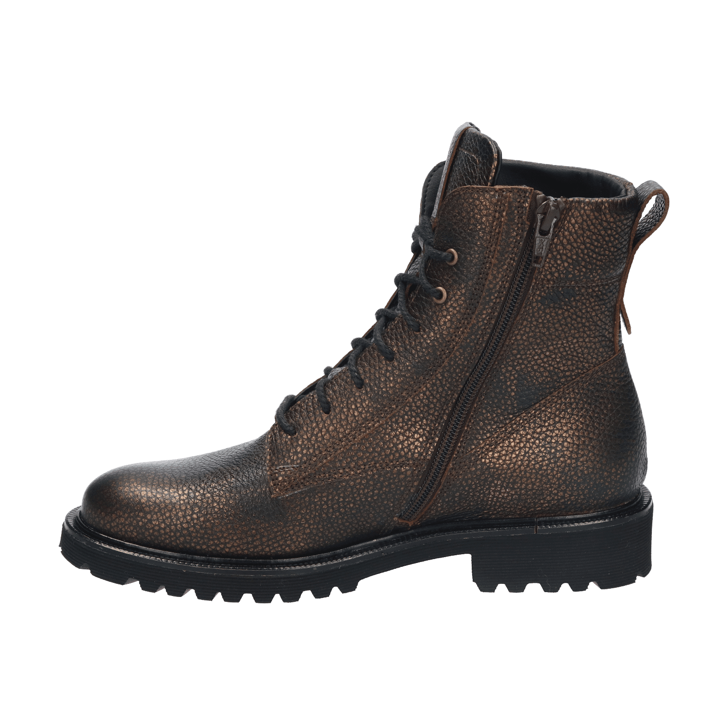 Outfits gecombineerd met dit enkelhoge veterlaarsje krijgen spontaan een coole uitstraling. Dat zit ‘m in de stoere treklus op de achterbies, de zachte beschermkraag rondom de enkels en de hoge tong. Andere opvallende kenmerken zijn het profiel van de zool en de grove veters. Toch is het de combinatie van deze stoere details met vrouwelijke elegantie waar deze schoen écht in uitblinkt. Let maar eens op de door stikwerk gecreëerde belijningen van het bovenwerk. Het maakt dat je deze laars zowel stoer als vrouwelijk, casual en gekleed kan dragen.