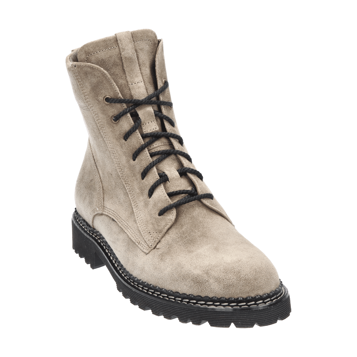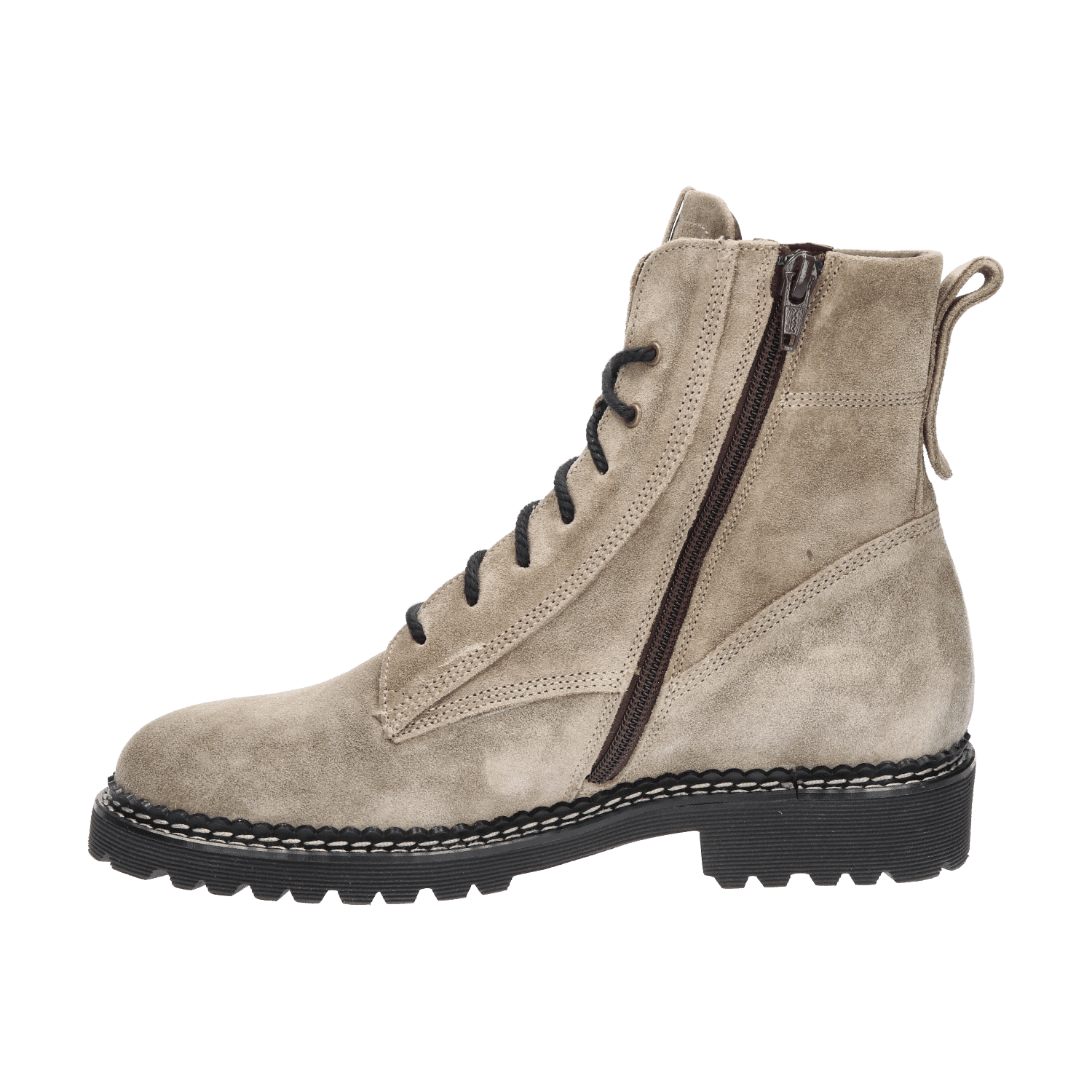 Outfits gecombineerd met dit enkelhoge veterlaarsje krijgen spontaan een coole uitstraling. Dat zit ‘m in de stoere treklus op de achterbies, de zachte beschermkraag rondom de enkels en de hoge tong. Andere opvallende kenmerken zijn het profiel van de zool en de grove veters. Toch is het de combinatie van deze stoere details met vrouwelijke elegantie waar deze schoen écht in uitblinkt. Let maar eens op de door stikwerk gecreëerde belijningen van het bovenwerk. Het maakt dat je deze laars zowel stoer als vrouwelijk, casual en gekleed kan dragen.