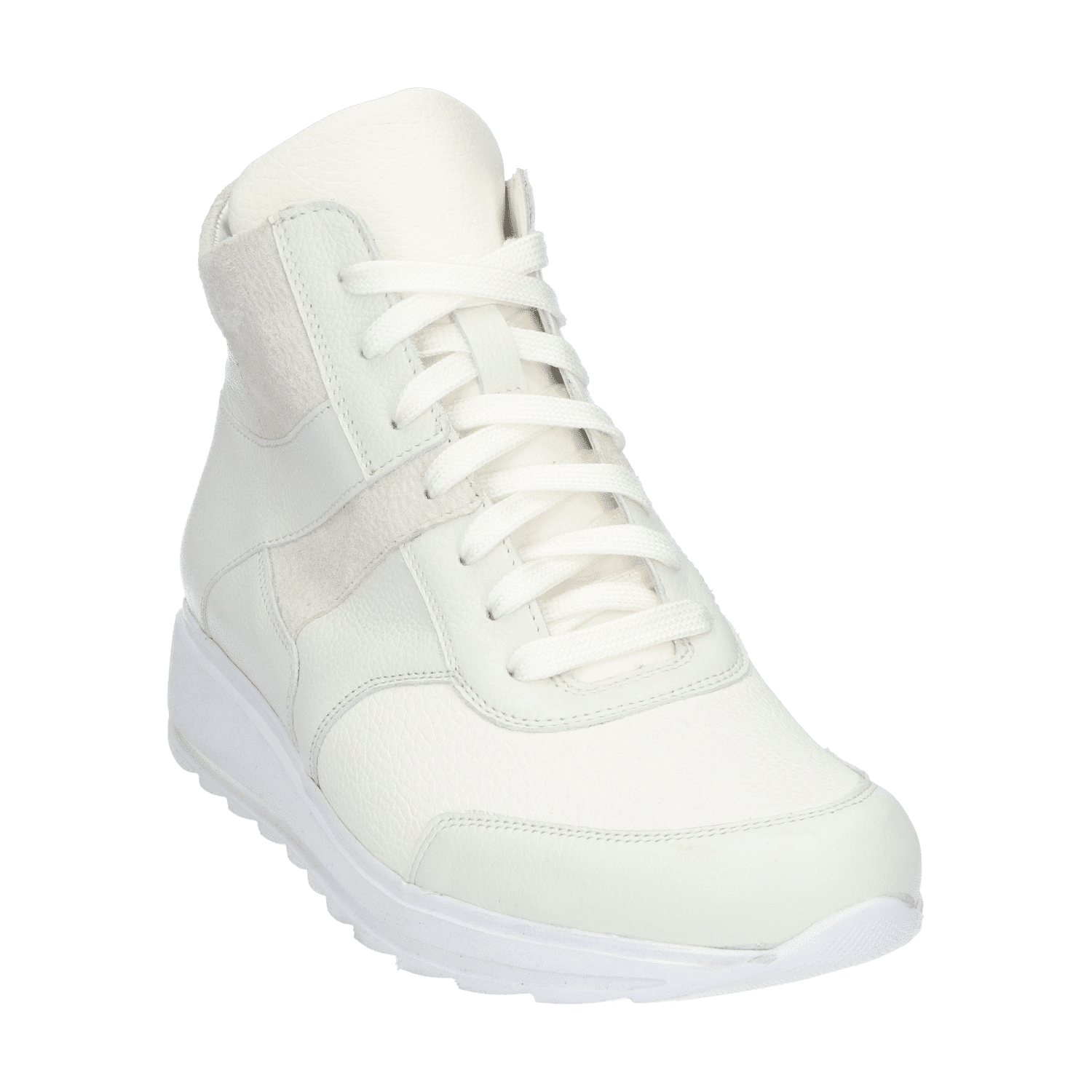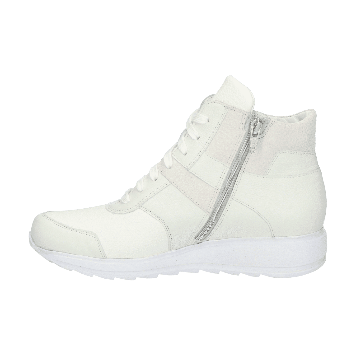 Heb jij nieuwe sneakers op je verlanglijstje staan? Dan is dit hoge model zeker het overwegen waard. De door stikwerk gecreëerde vlakken op de zijkant geven deze schoen een een elegante twist. Onder de veters is de tong van mesh, wat ademend werkt voor je voeten, en aan de binnenzijde zit een rits om het aan- en uittrekken te versoepelen. En dat is nog niet alles: het gebied rond de voorvoet is uitgevoerd in zachte, extra flexibele materiaal tegen knellen.