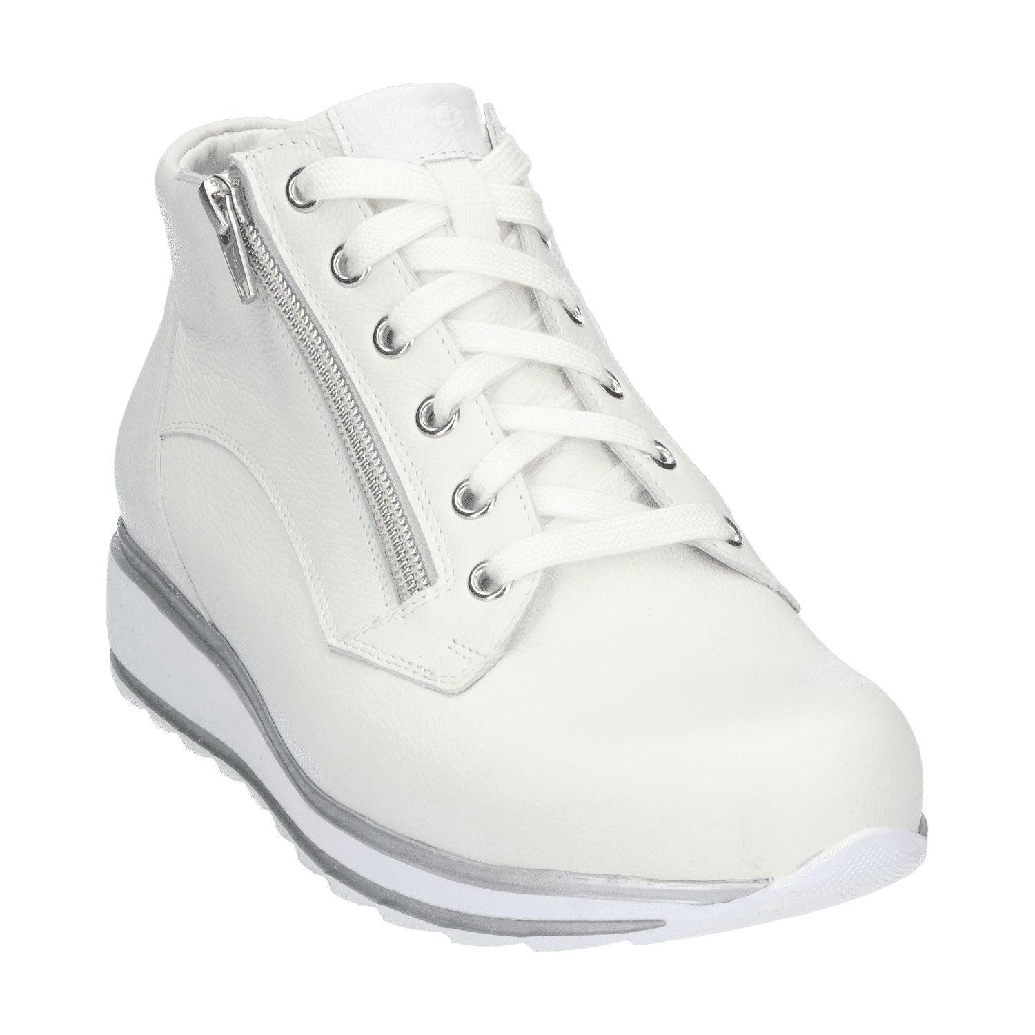 Deze hoge, sportieve veterschoen blinkt uit door stijlvolle eenvoud. Dat maakt het model tot een veelzijdige en duurzame basic waar je gegarandeerd jaren plezier van hebt. De door stikwerk gecreëerde belijningen geven dit model een uniek karakter, terwijl de zool zorgt voor een sportieve twist. Een praktische toevoeging is de veter-rits-combinatie, waardoor je de schoen makkelijk aan en uit kunt doen.