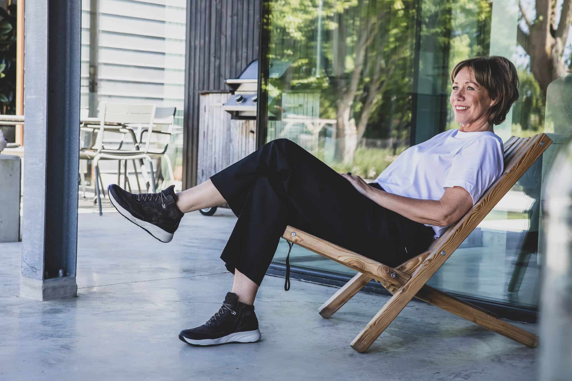 Aan het gebruiksgemak is uiteraard ook gedacht: dankzij de veter-rits-combinatie kun je de sneaker heel gemakkelijk aan- en uitdoen én goed afstellen om de voet. Extra bijzonder is dat de vetersluiting verschillende draagopties biedt. Zo kun je de veters door de bovenste ringen rijgen en dan strikken of je kiest ervoor om de bovenste veterringen over te slaan. Daarmee komt de schoen bovenin wat losser te zitten, wat een nonchalante uitstraling geeft. Kies je voor de tweede optie? Je zal merken dat de schoen nog steeds goed om de voet sluit. Dat komt doordat één paar veterringen iets naar achteren is geplaatst.