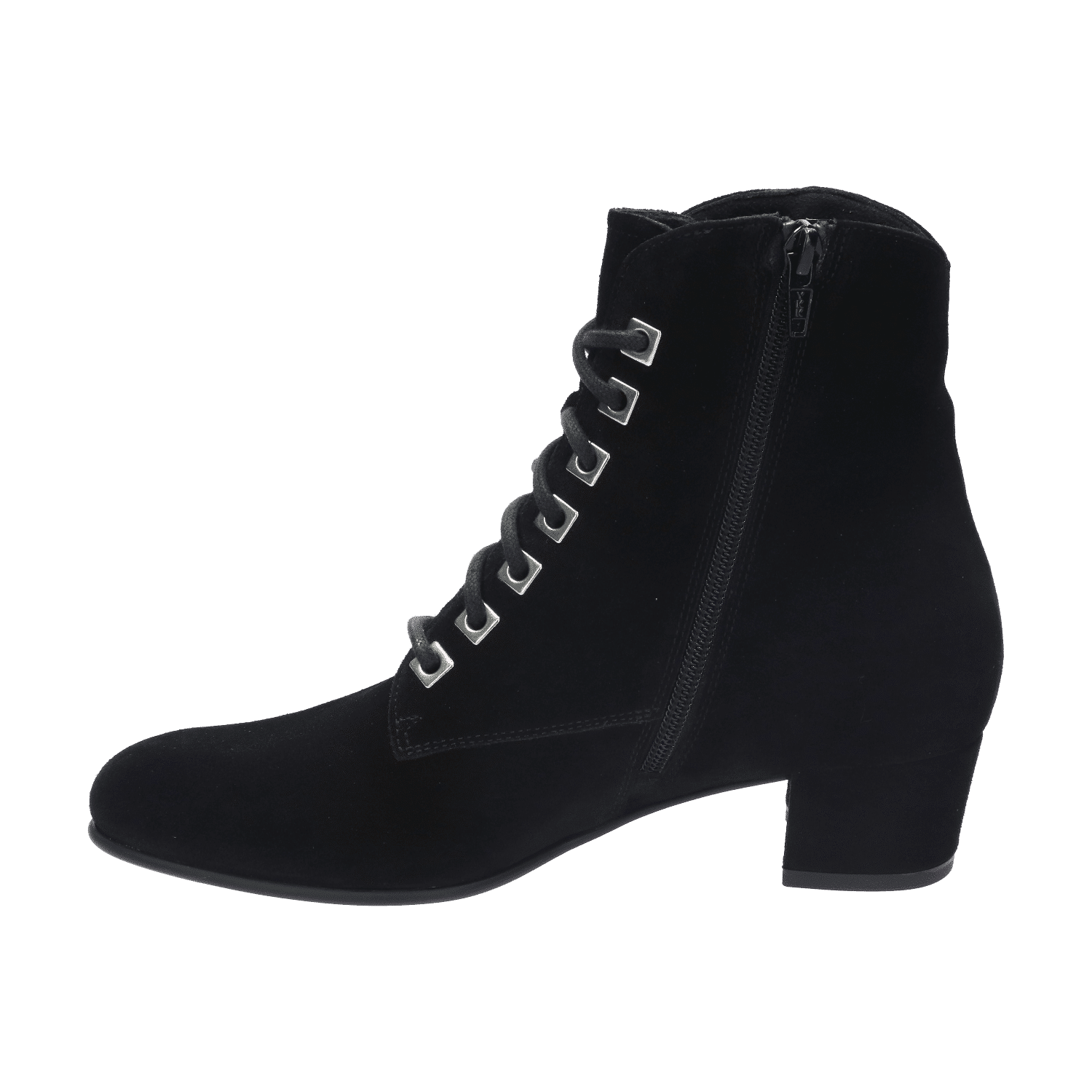 Het bovenwerk springt in het oog door de bijzondere veterringen. Of beter gezegd: vierkante ‘veterplaatjes’, waar de veters doorheen zijn geregen. In combinatie met de ritssluiting aan de binnenzijde trek je dit laarsje gemakkelijk aan en uit. Een ander opvallend detail is de verticale spannaad aan de buitenzijde van de schacht die het geheel net even wat speelser maakt.