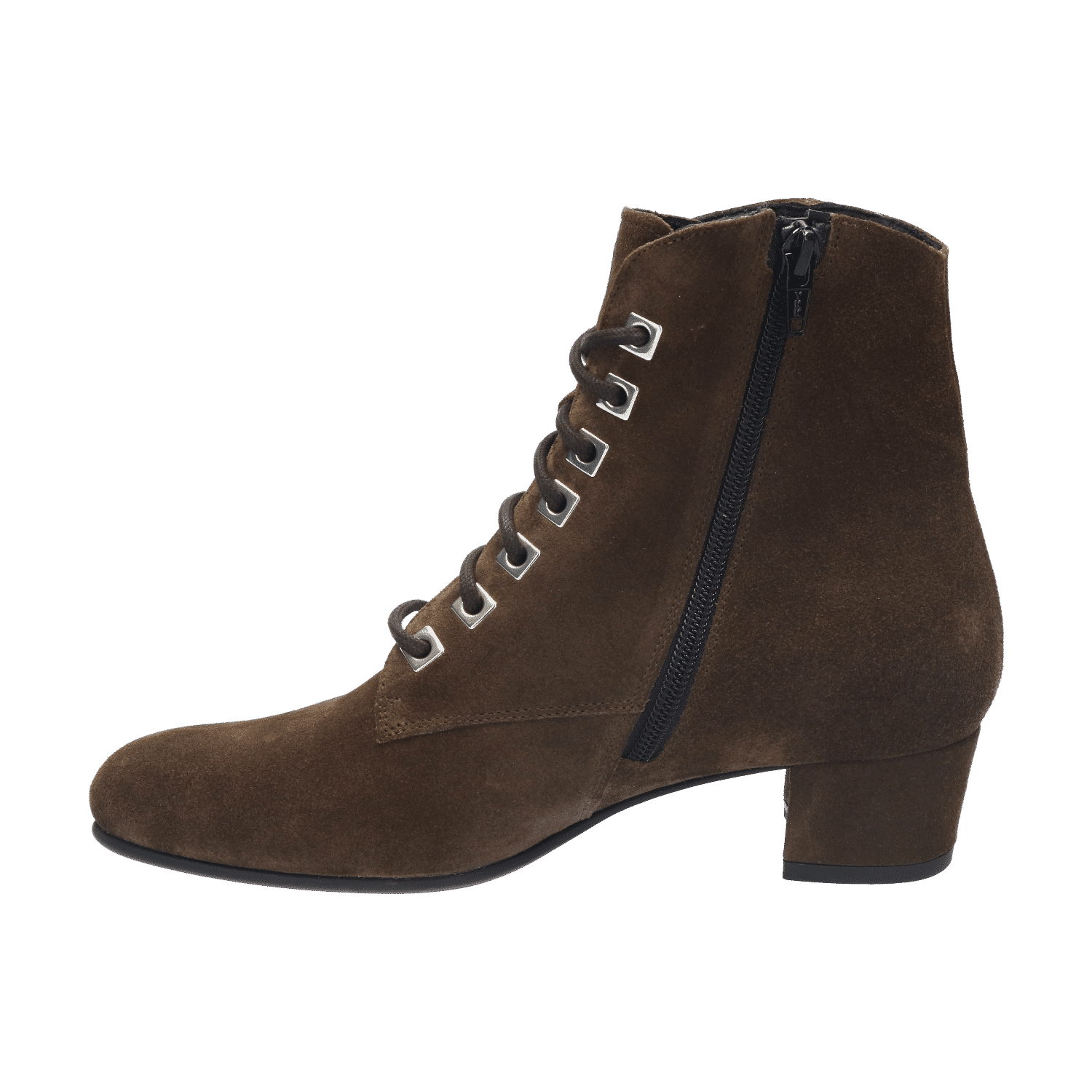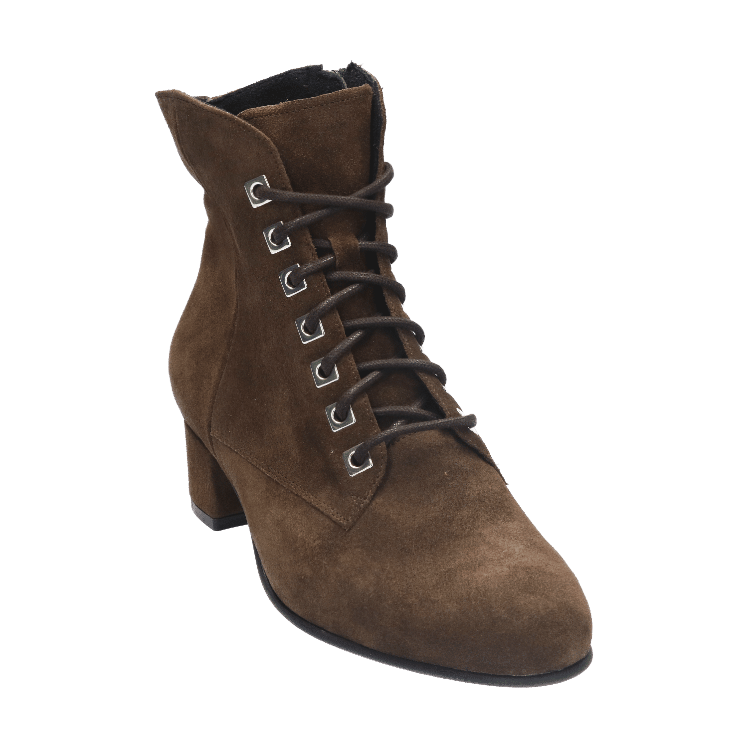 Het bovenwerk springt in het oog door de bijzondere veterringen. Of beter gezegd: vierkante ‘veterplaatjes’, waar de veters doorheen zijn geregen. In combinatie met de ritssluiting aan de binnenzijde trek je dit laarsje gemakkelijk aan en uit. Een ander opvallend detail is de verticale spannaad aan de buitenzijde van de schacht die het geheel net even wat speelser maakt.