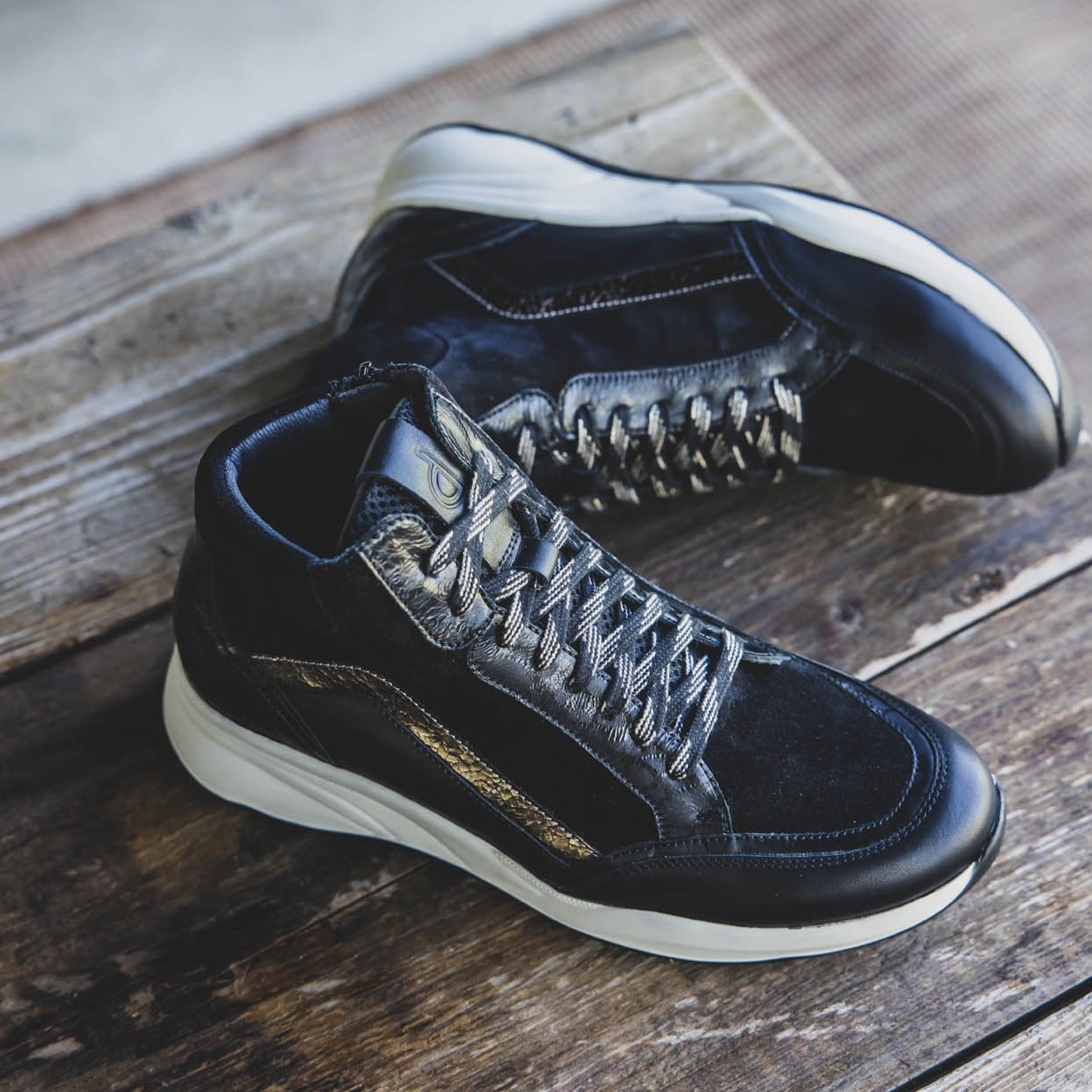 Met een binnenvoering van Dry Maxx verzekert deze sneaker je van ultiem draagcomfort. Het materiaal is ademend, vochtabsorberend en vormt zich naar de voet voor de ideale pasvorm. Bij de hiel en de tong is de schoen voorzien van zachte polstering voor nog meer comfort en een luxe uitstraling Verder heeft dit paar sneakers niet alleen een vetersluiting (let ook op de bijzondere veters met metallic glans), maar ook een rits aan de binnenzijde om het aan- en uittrekken te vergemakkelijken.