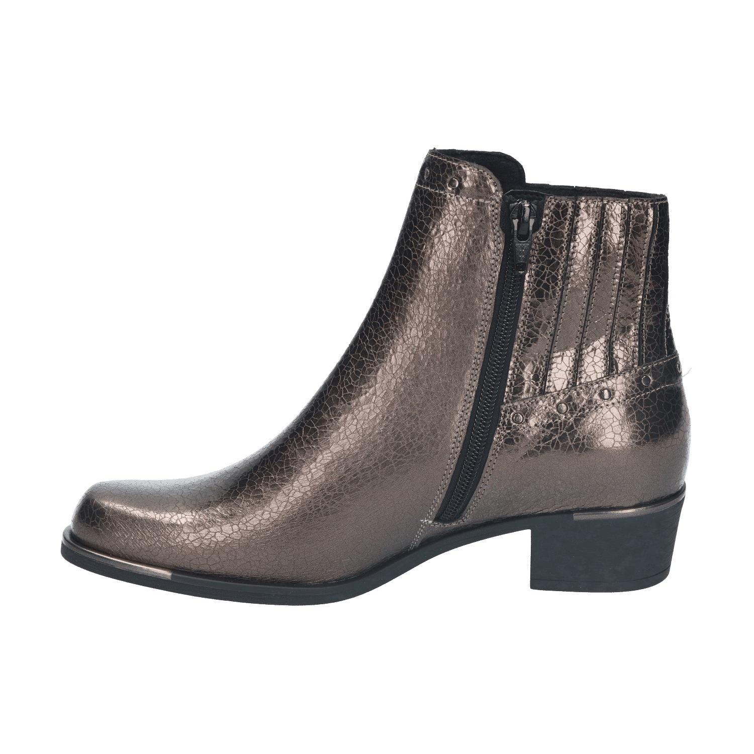 De metallic afwerking van de zool is een subtiele knipoog naar de traditionele western look en geeft het geheel een luxueuze touch. Ook de carréneus voegt een stijlvol element toe en biedt bovendien volop ruimte voor je tenen. Aan de binnenzijde van de schacht is de laars voorzien van een rits die het aan- en uittrekken versoepelt.