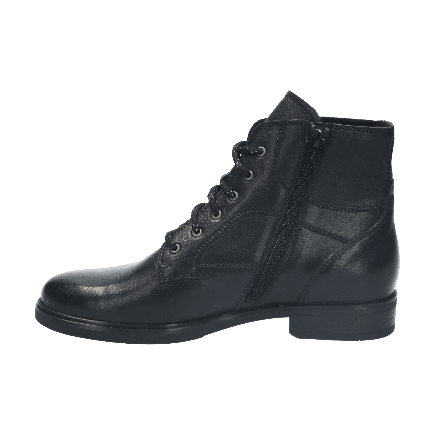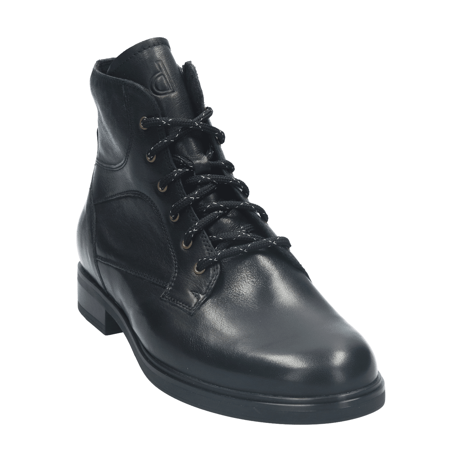De schoen is fraai afgewerkt met een merkstempel op de tong en stikwerk belijningen die het elegante silhouet benadrukken. De metalen veterringen geven de schoen een stoere uitstraling. Voor optimaal gebruiksgemak is dit model voorzien van een handige rits aan de binnenzijde van de schacht, waardoor je de laarsjes snel aan- en uittrekt zonder steeds de veters te hoeven strikken.